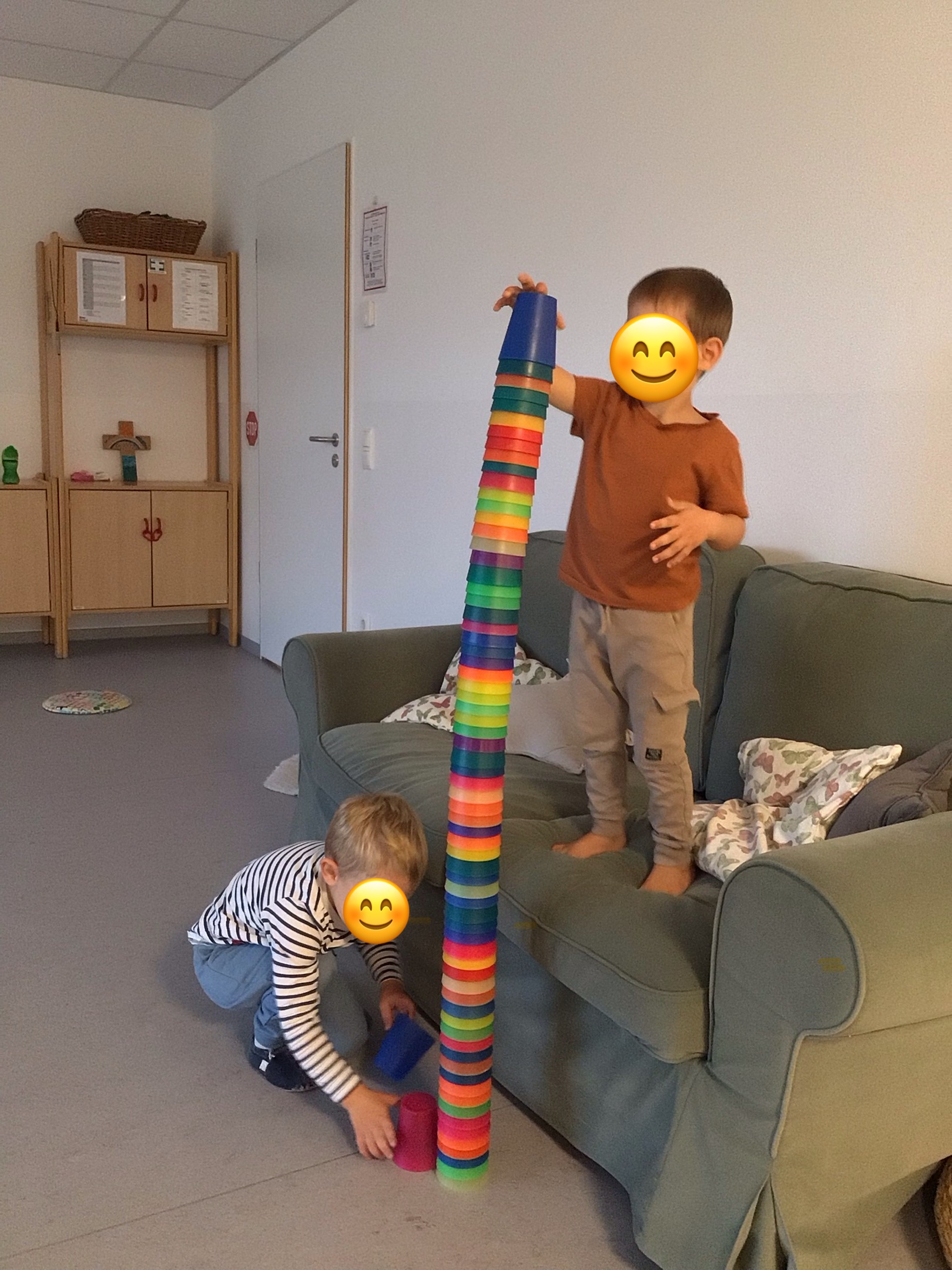 In der Sonnengruppe haben die Kinder aus bunten Bechern riesige Türme gebaut! Zum Schluss musste das Sofa als Baugerüst für die Bauarbeiter*Innen…