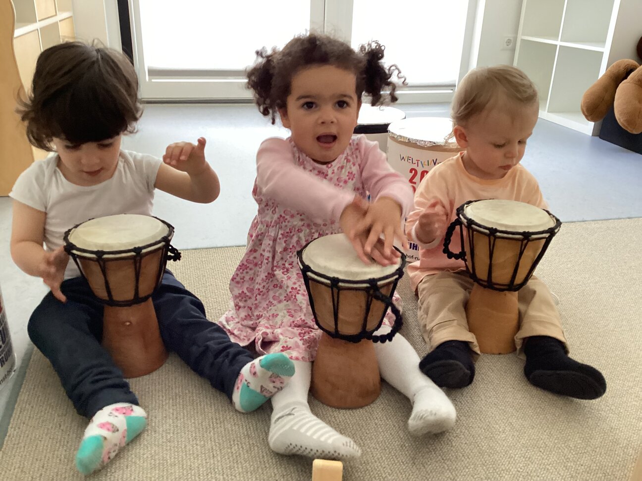 Jeder weiß, wie wichtig das Musizieren im Lernprozess ist. Das Singen und Musizieren fördert die Sprachentwicklung, die motorische Entwicklung sowie musikalische und soziale Kompetenz und zieht sich wie ein roter Faden durch unseren KiTa-Alltag (Morgenkreis, Kinderchor, musikalische Früherziehung durch externe Fachkraft, musikalische Mitgestaltung von Gottesdiensten und Vieles mehr).